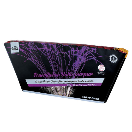 10 Schuss Singlerow "Feuerfächer Volta Purpur", Kal. 30mm, ca. 1 Sek., 305g NEC, CE Kategorie F2 /