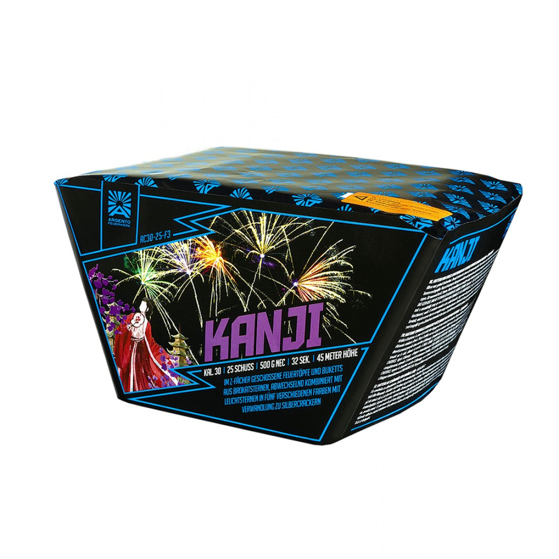 Im Z-Fächer geschossene Feuertöepfe und Buketts aus Brokatsternen, abwechselnd kombiniert mit Leuchtsternen in 5 verschiedenen Farben mit Verwandlung zu Silbercrackern